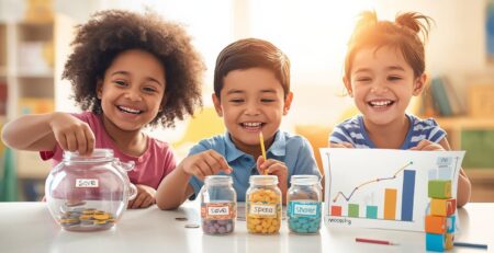 Create a “home bank” jar. Reward saving with small pretend bonuses. Children love seeing their money grow.